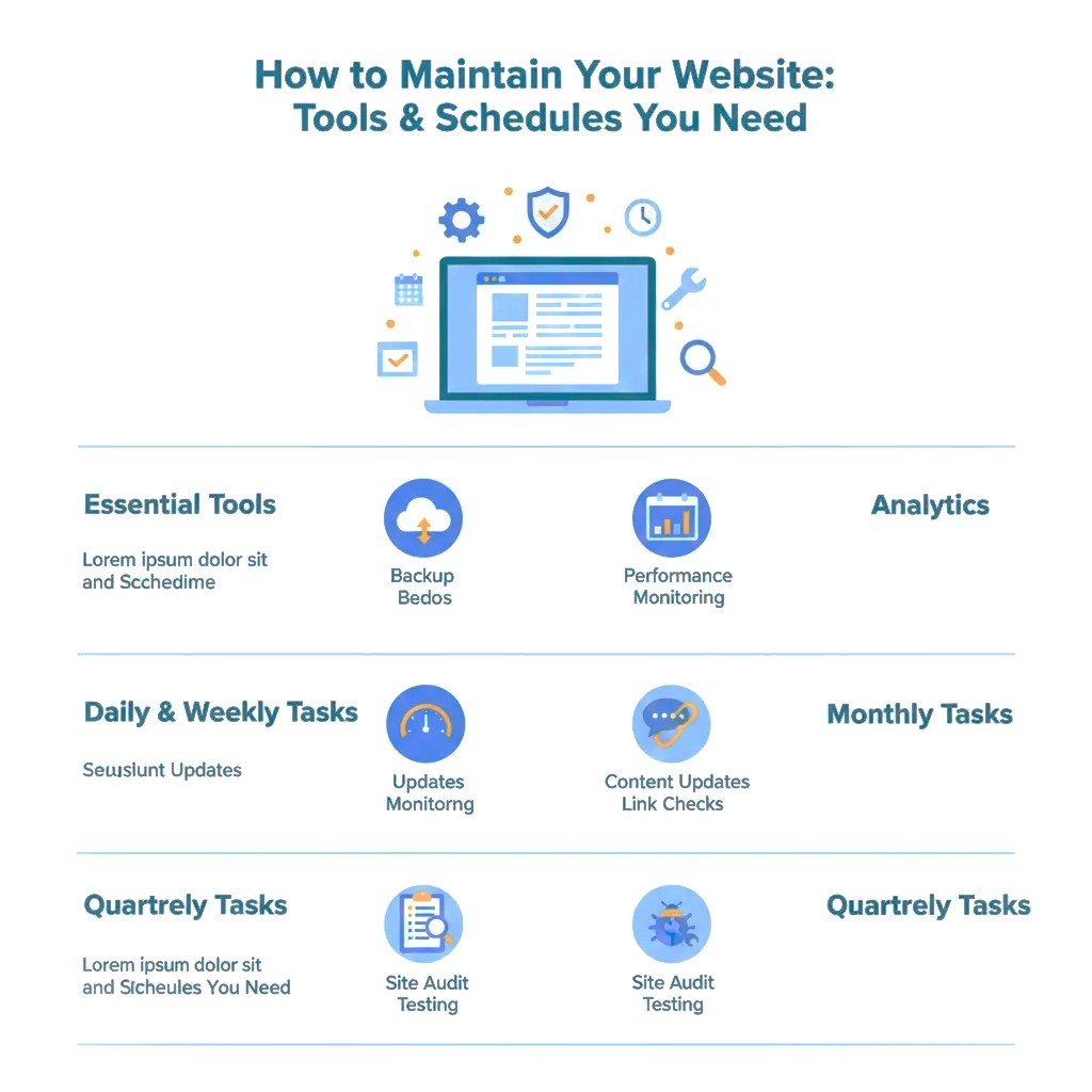 Maintaining a website efficiently requires the right tools. These help you monitor performance, secure your site, and stay organized with updates. Here are some essential categories and tools to include in your maintenance routine: